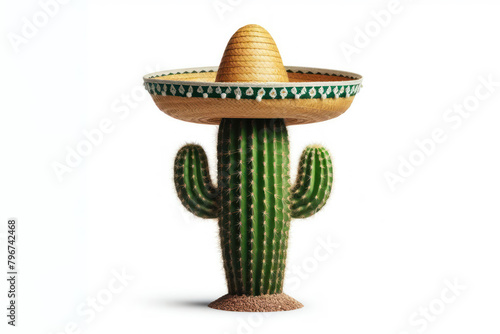 Cactus wearing a mexican sombrero hat isolated on a white background