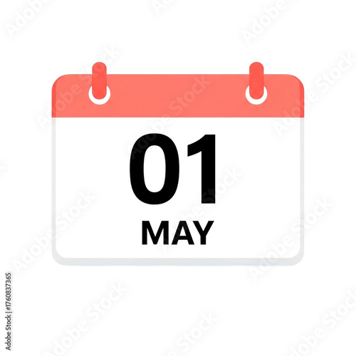 calendar, date, day, month, may, spring, season, time, schedule, planner, appointment, event, holiday, first, number, 1, symbol, graphic, design, flat, simple, clean, modern, minimalist, red, orange, pink, coral, paper, page