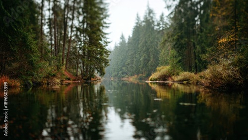Calm river in a serene forest