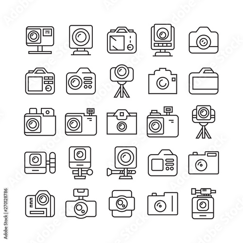 camera icons set, line design