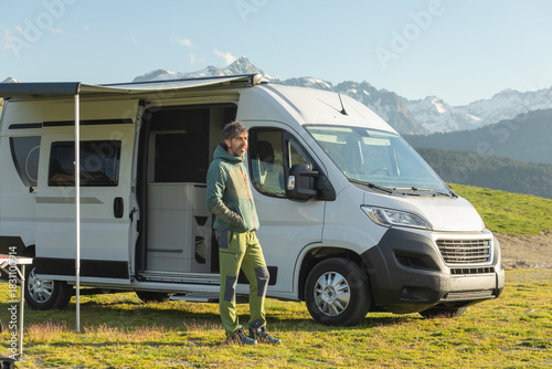 man, camper, van, mountain, nature, landscape, travel, adventure, outdoors, freedom, exploration, camping, leisure, lifestyle, trip, journey, scenic, wild, road, hill, countryside, holiday, vehicle, serene, tranquil, escape, fresh, air, explorer, terrain, get-away, weekend, retreat, wilderness, wanderlust, park, camp, morning, peace, vacation, mountain, aneto, landscape, half face
