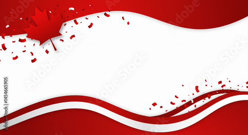 Canada Day Background with Maple Leaf and Red White Wavy Banner