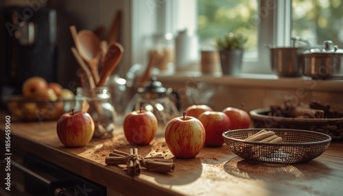 Candid indoor scene of a kitchen filled with the aroma of cinnamon apples
