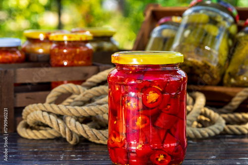 canned, chili, condiment, food, fresh, epicure, green, homemade, hot, hot pepper, jar, kitchen, marinated, pepper, pickled, preserved, red, snack, spicey, vegetable, vinegar