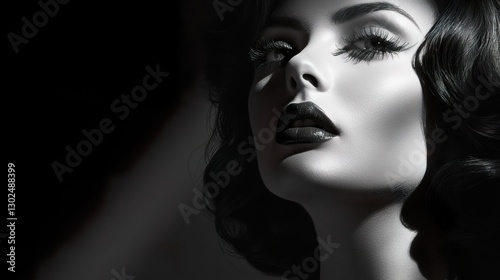 Captivating portrait of a glamorous woman studio setting high-contrast photography black and white close-up view timeless elegance