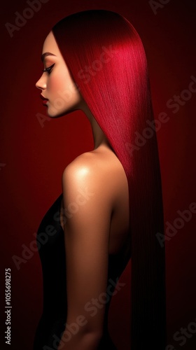 portrait, woman, red, hair, vibrant, dark, background, beauty, fashion, female, model, elegance, coiffure, profile, face, glamour, shiny, straight, skin, care, wellness, exquisite, mysterious, allure, feminine, redhead, studio, shot, make-up, cosmetology, sophistication, bold, colours, contrast, sensual, creative, stunning, side, view, chic, art, stylish