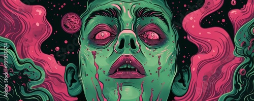 surreal, art, piece, green, face, figure, vibrant, colours, cosmic, element, cubist, craftsmanship, contrast, mystery, portrait, thinks, intrigue, expression, image, aerial, ensemble, artist, design, texture, detail, invoking, beauty, formation, eclectic, flow, tailor, aesthetic, fusion, vision, visual, technique, feature, fashion, graphic, pattern, geometric, abstract, craft, artwork, modern, playfulness