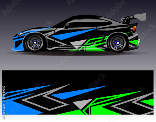 Car wrap design vector. Graphic abstract stripe racing background designs for vehicle, rally, race, adventure and car racing livery