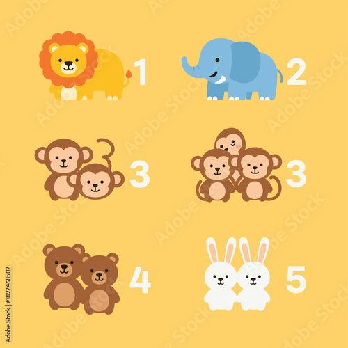 lion, elephant, monkey, bear, rabbit, cartoon, animal, wildlife, illustration, cute, fun, numbered, mammal, wild, zoo, safari, friendship, group, set, collection, character, graphic, design, children, children, education, learning, funny, playful, happy, colourful, vibrant, simple, flat, style, vector, clip art, icon, symbol, image, picture, scene, story, narrative, sequence, series, display, showcase, feature
