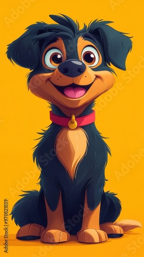 Cartoon art style, a playful dog character with exaggerated features, bright colors, and a lively background, perfect for a fun illustration.