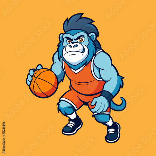 cartoon, basketball, sport, ball, vector, gorilla, player, illustration, character, football, team, children, game, mascot, sport, animal, fun, basket, athlete, play, children, action