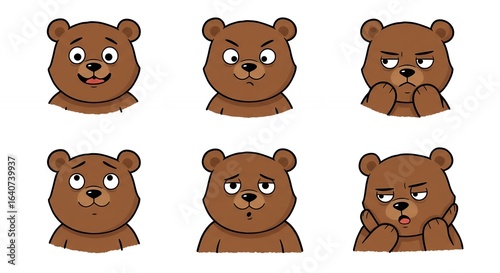 bear, cartoon, animal, illustration, graphic, digital, emotion, expression, character, design, brown, cute, happy, angry, sad, confused, thoughtful, collection, set, isolated, vector, graphic design, clip art, image, icon, face