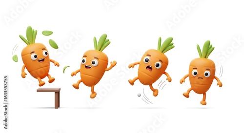 Cartoon carrot characters jumping and posing