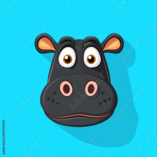 cartoon, cow, head, illustration, pink nose, blue background, animal, face, expressive, playful, whimsical, open mouth, high-coloured, charming, endearing, cartoonish, animal head