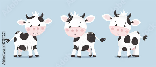 Cartoon Cows Standing on Light Blue Background