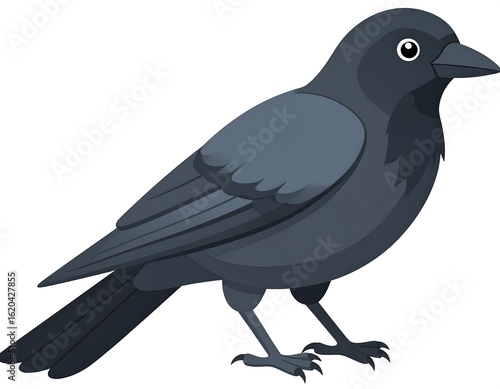 crow, bird, cartoon, profile, dark, grey, black, feathered, wing, beak, eye, side, animal, nature, illustration, vector, graphic, cute, simple, design, perched, standing, wildlife, drawing, digital, flat, half face, character