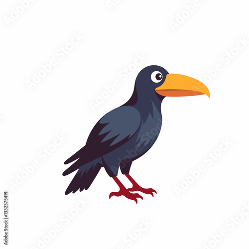 Cartoon crow with vibrant colors on white background, whimsical illustration