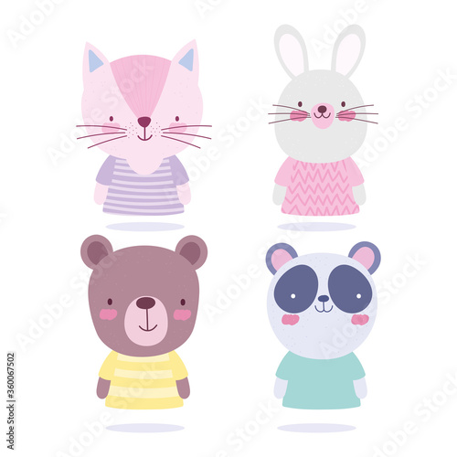 animal, cute, baby, vector, face, illustration, cartoon, cat, rabbit, bear, panda, character, animal, shower, card, background, birthday, children, party, pet, forest, jungle, funny, happy, icon, simple, zoo, art, graphic, wild, fun, wildlife, design, nature, print, tiger, timberland, drawing, children