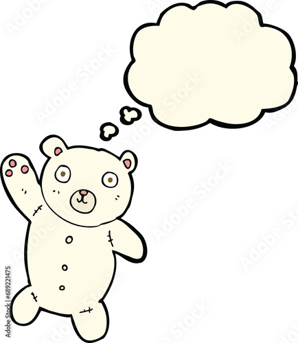 animal, cute, teddy, bear, waving, cartoon, thought bubble, thought, character, cheerful, clip art, clip, art, doodle, drawing, drawn, funny, hand, traditional, illustration, quirky, retro, silly, polar, white