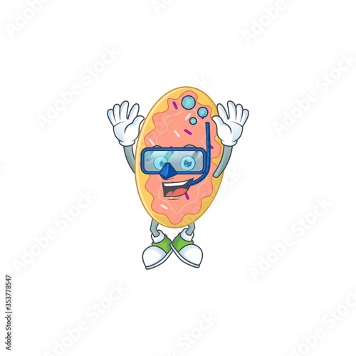 cartoon drawing concept of bread wearing cool Diving glasses ready to swim