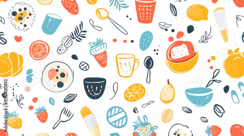 Cartoon food vector illustration with seamless pattern design, perfect for kitchen or restaurant