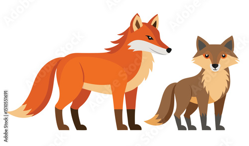 fox, wolf, canino, animal, wildlife, cartoon, illustration, graphic, design, vector, clip art, cute, adorable, children, children, children, children, baby, toddler, infant, young, forest, timberland, nature, wild, red fox, mammal, predator, fauna, character, icon, symbol, logotype, art, drawing, painting, vignetting, flat, simple, minimal, isolated, white background