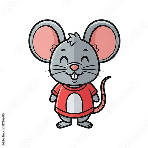 mouse, cartoon, grey, character, illustration, cute, funny, animal, rodent, red, shirt, white, background, simple, design, children, children, storybook, animation