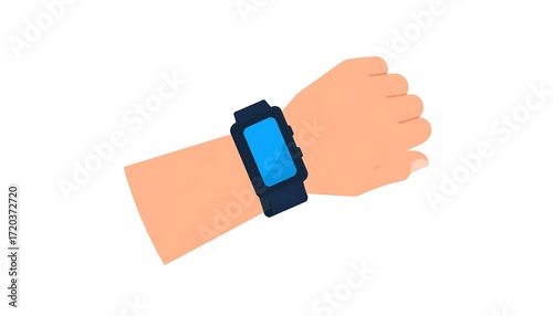 hand, watch, smart, wrist, digital, display, blue, device, technology, modern, fashion, illustration, flat, cartoon, contraption, wristband, time, image