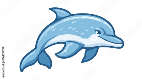 dolphin, animal, marin, ocean, sea, water, blue, cartoon, illustration, isolated, white, background, smiling, happy, swim, mammal, aquatic, playful, nature, underwater, art, design, vector, graphic, icon, cheerful, friendly, wave, fin, tail, eye, cute, fun, children, children, education, print, digital, element, symbol, character, drawing, style, artwork, concept, creative, template, copy space, commercial