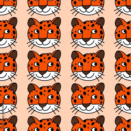 jaguar, animal head, wild animal, jungle animal, wildlife, big cat, seamless pattern, pattern, background, wallpaper, illustration, vector, repeat, textile, fabric, wrapping paper