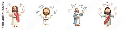 Cartoon Jesus Christ with Doves: Religious Illustration of Peace, Love, and Spirituality