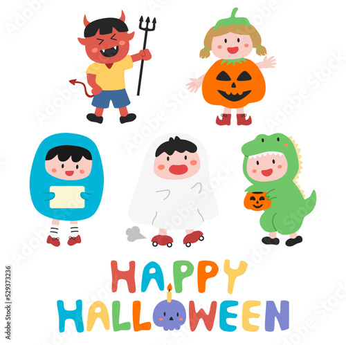 Cartoon kids character in Halloween costumes. Trick or Treat. Vector illustration.