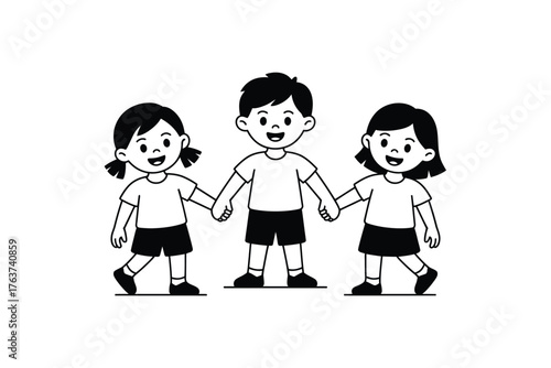 cartoon, children, holding, hand, vector, illustration, friendship, concept, children, boy, girl, happy, together, cute, drawing, artwork, graphic, design, outline, black, white, clip art, toddler, preschool, children, person, people, smile, play, fun, youth, elementary, school, education, learning, care, support, community, human relationships, family, joy, innocence, childhood, young, art, digital