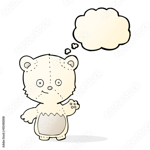 cartoon little polar bear waving with thought bubble