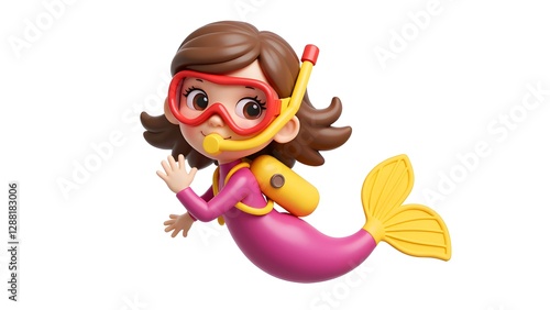 mermaid, cartoon, diving, marine life, cute, smiling, three-dimensional, rendering, undersea, fairy tale, animation, ocean, water, children