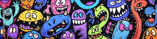 monster, cartoon, pattern, colourful, design, drawing, graphic, art, illustration, creature, cute, funny, happy, teeth, eye, mouth, vibrant, whimsical, character, fun, children, texture, background, digital, artwork, creative, abstract, monster, crazy, artistic, unique, playful, imagination, seamless