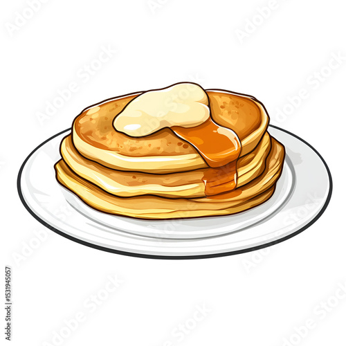 Cartoon pancake stack with butter and syrup isolated on transparent background