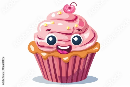cupcake, cartoon, pink, vector, dessert, sweet, treat, cute, design, bakery, illustration, party, cherry, frosting, delicious, tasty, happy, smile, food, confectionery, cake, cheerful, pastry, baked, graphic, art, whimsical, sugar, sprinkle, icon, clip, isolated, background, element, baby, children, fun, birthday, event, invitation, deliciously, vibrant, sweet