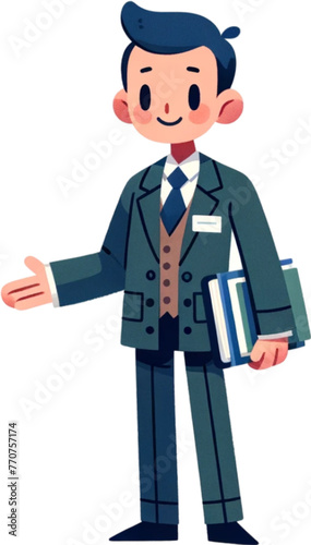 cartoon, businessman, business, vector, character, illustration, person, suit, smile, office, standing, work, boy, hand, attaching, design, people, manager, signs, success, woman, waving, fun