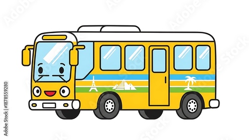 Cartoon school bus with smiling face.