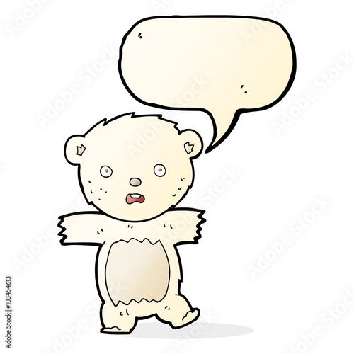 cartoon shocked polar bear cub with speech bubble