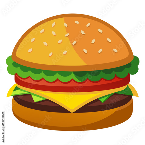 burger, cartoon, food, fast food, illustration, sandwich, vector, cheese, tomatoes, lettuce, patty, bun, sesame seeds, meal, delicious, junk food, icon, graphic, design, isolated, clip art, eatery, menu, tasty, snack, lunch, dinner, american, cookery, drawing, flat, style, healthy, fresh, ingredient, nourishment, diet, cook, cooking, deliciously, appetising, epicure, eat, simple, isolated on white