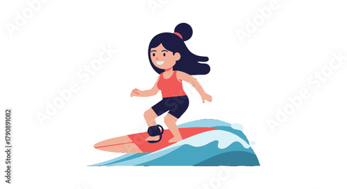 surfing, wave, water, ocean, surfer, cartoon, illustration, sport, activity, summer, fun, lifestyle, girl, happy, smile, board, action, skill, dynamic, recreation, holiday, vacation, beach, travel, extreme, animation, design, isolated, comic, art, character, young, cheerful, sportswoman, hobby, coast, sunlight, active, enjoy, challenge, playful, floating, ride