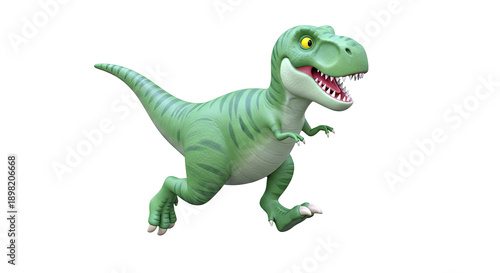 dinosaur, tyrannosaurus, cartoon, prehistoric, creature, animal, reptile, green, running, action, ferocious, teeth, yellow eyes, stylised, illustration, character, toy, paleontology, fossil, ancient, wildlife, monster, predator, jurassic, cretaceous, scarey, cute