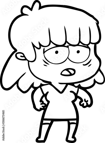 sleepy, stressed, exhausted, woman, female, girl, cartoon, drawing, illustration, retro, doodle, freehand, free, hand, drawn, quirky, art, artwork, funny, character