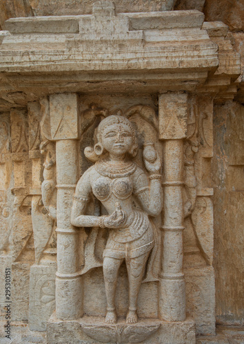 Carved idol on the wall of Vijaya Stambha tower of victory at Chittorgarh fort, Rajasthan, Chittorgarh, India