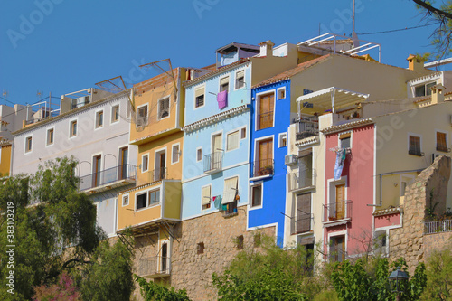 Casas de colores sobre en río Amadorio, Villajoyosa, España