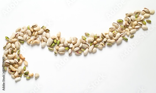 pistachio, cashew, nut, food, snack, healthy, delicious, tasty, crunchy, creamy, savoury, salty, sweet, protein, fiber, vitamin, mineral, antioxidant, energy, nourishment, diet, receipe, ingredient, cooking, baking, dessert, mix, blend, assortment, variety, organic, natural, wholesome, fresh, raw, roasted, shelled, kernel, white, background, pattern, wave, curve