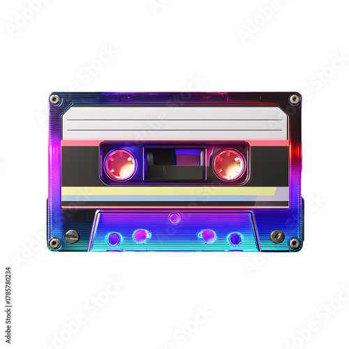 Cassette Tape Aesthetics: The classic cassette tape with a modern iridescent twist, showcasing the fusion of retro charm and contemporary design.