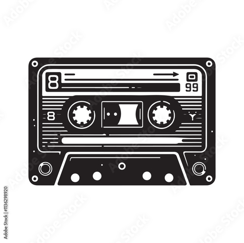 cassette, tape, silhouette, music, simple, 80s, pattern, icon, abstract, vector, design, technology, isolated, vintage, illustration, retro, template, white background, black, graphic, signs, old, print, shape, shadow, media, audio, stereo, decorative, equipment, pop, element, analog, mono, recorder, compact, symbol, 1980s, disco, image, musical, object, old-fashioned, picture, record, sound, style